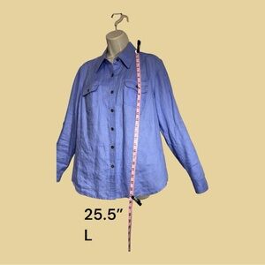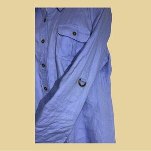 Pristine condition linen long sleeve shirt, lightweight and easy care. Measures 21” P2P. Front chest button pockets. Metal loop embellishments, no interior tabs to adjust to short sleeves. Perfect summer short, idea for everyday or special occasions.