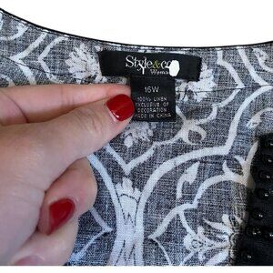Style & Co. 100% Linen Tunic Tunic Top 16W | Beaded V-Neck Damask Print
