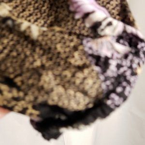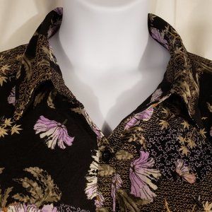 This is a Tunic length Nylon Shirt that Buttons up the front and has a point collar. It is lined at the top bodice as the rest of the shirt is mildly see through. It is very pretty and flowing, can be worn buttoned or unbuttoned. Long sleeves with Elastic at cuff. Black/ White/ Pink and white. Size 1X