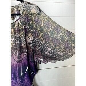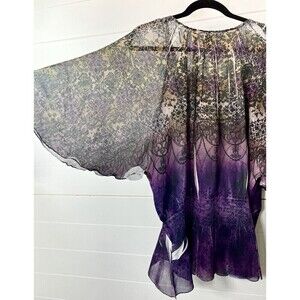 Style & Co 1X Sheer Top Womens Lettuce Edge Fairy Wing Elastic Waist Purple