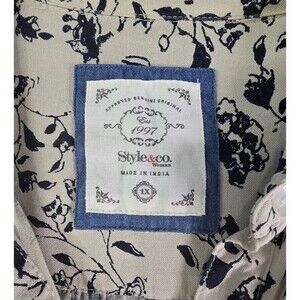 Style & Co 1x Beige wLeafy Navy Print and A Party In The Back! Button Up Blouse