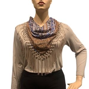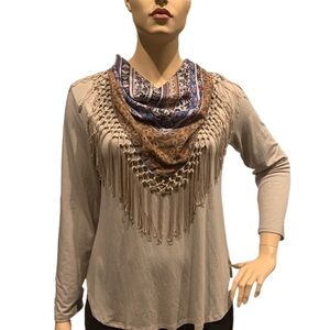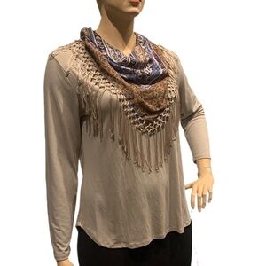 Style & Co 2 pc. Jersey and Boho Scarf Size XL Long Sleeves Heather Neutral NEW