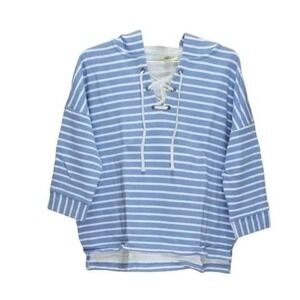 Style & Co 3/4 Sleeve Lace Up Sailor Stripe Hoodie Sailor Stripe XL