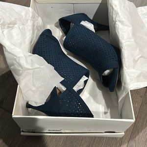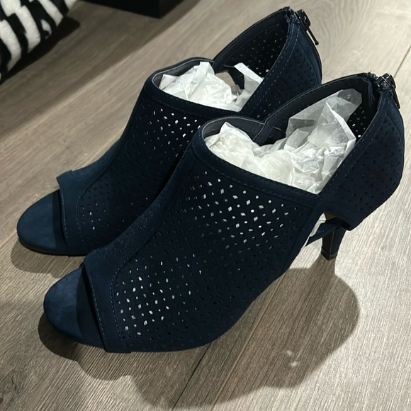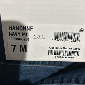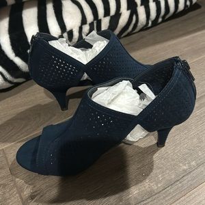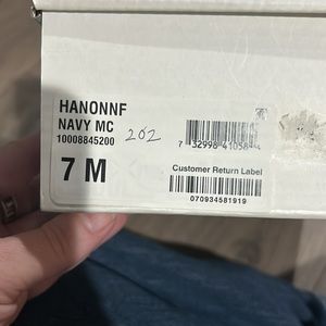 Navy heels. 7m. Disclaimer on these shoes. They are not my size, so I don’t know if the sizing by the manufacturer is small or big. I also don’t know if they squeak or hurt your feet.