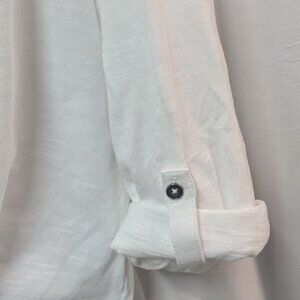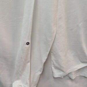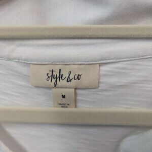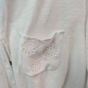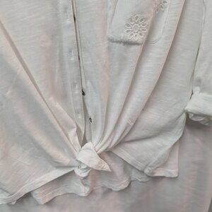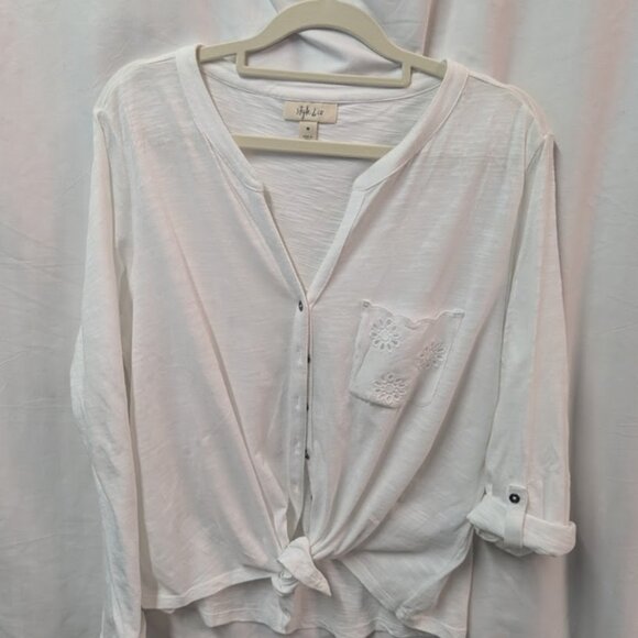 Style & Co Button up top with tie waste Cotton, comfortable top and cute. Long sleeve or tie at the elbow. Cute Daisy design on the pocket