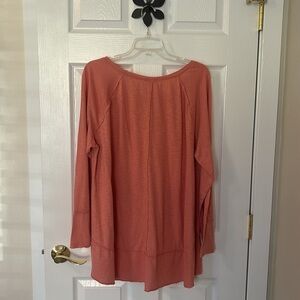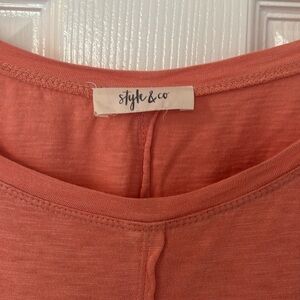 Style & Co Bateau Neck, raglan sleeves, ragged-edged LS Hi Lo hem Tee 2X