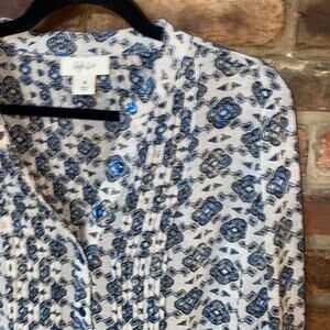 Style & Co Beige Blue Printed Button Down Tie Back Blouse Women's Size Medium