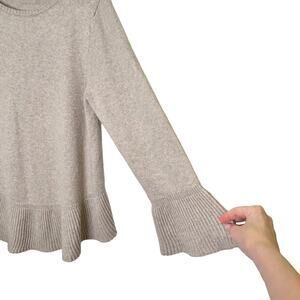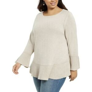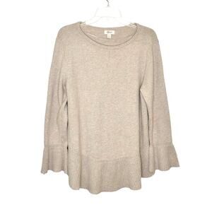 Style & Co. Beige Ribbed Ruffle Hem and Cuffs Pullover Tunic Sweater