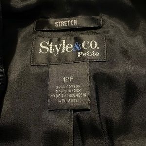 Style & Co. Black Corduroy Satin Trim Hidden Snap Front Jacket