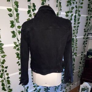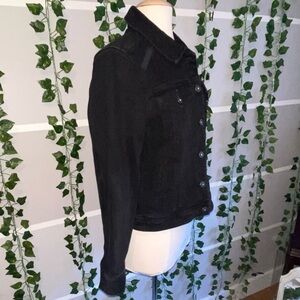 Cute black denim jacket from Style & Co. Ideal for fall layering and versatile styling. Slightly shorter “cropped” waist, isnt too short, can be tightened a bit with buttons at waistline.