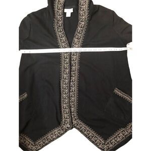 Style & Co. Black Size Medium Embroidered Hooded Open Front French Terry Jacket. Two front pockets, asymmetrical hem. Lagenlook knit boho hoodie