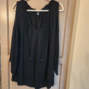 Style & Co Black Peasant Style Cold Shoulder Top 3/4 Sleeve Size 3X