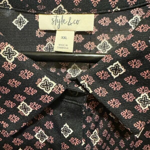 Style & Co Black Pink Tan Button Up Dress Tunic Sz XXL
