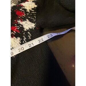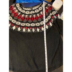 Style & Co Black Red Patterned Round Neck Bishop Sleeve Knit Sweater Sz 1X