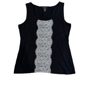 Style & Co Black Sleeveless Tank With Lace Decoration in Front Size L