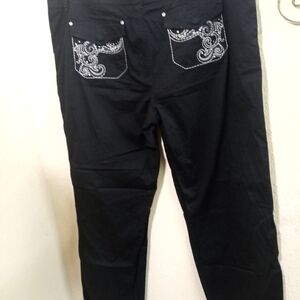 Sleek black trousers with elegant embroidery. Perfect for any occasion.