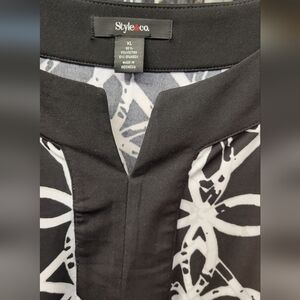 Style & Co. Black White Gray Patterned Tunic 3/4 Sleeve Top XL