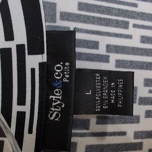 Style & Co. Black and White A Line Dress Size Petite Large . Wrinkle free, easy care machine washable. Great dress for travel. Material has a lot of stretch. Figure flattering. Excellent pre-owned condition with no flaws.
