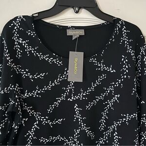 NWT Brand new! Excellent condition & quality! Beautiful black long sleeve blouse with white pattern by Style & Co. cotton & polyester blend. Measurements in photos. Women’s size small. Smoke free home.