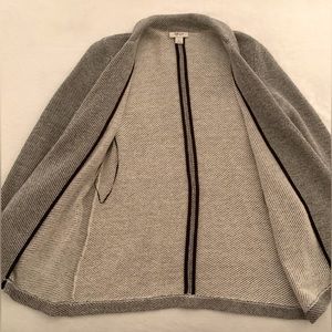 Pre-owned in excellent condition. No flaws. Black/White. Two front pockets. 28”Long. Pit to pit 20”. 86% Cotton. 14% Polyester. Small.