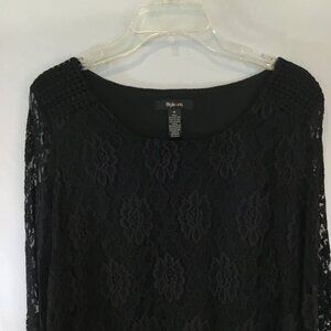 Style & Co Blouse 3/4 Sleeve Lace Embroidery Overlay Pullover Women's Sz Medium