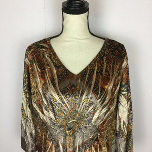 Style & Co Blouse Top Womans Plus Sz 1X Floral Mandala V-Neck Velvet 3/4 Sleeve a63