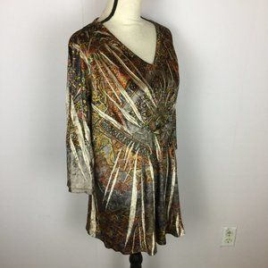 Style & Co Blouse Top Womans Plus Sz 1X Floral Mandala V-Neck Velvet 3/4 Sleeve