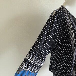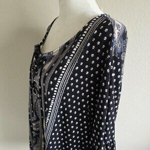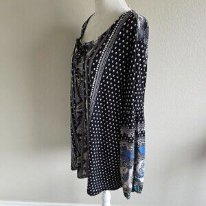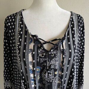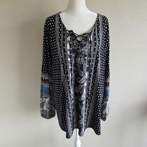 Style & Co Blouse Tunic Black Floral Paisley Stretch Shoelace Tie Neck Plus 2X