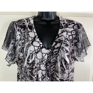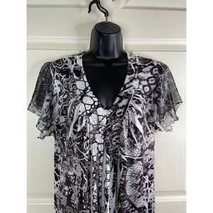 Style & Co Blouse Women Size XL Short Sleeve Black White Geometric Stretch Studs