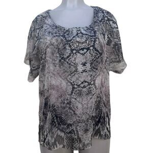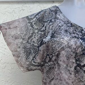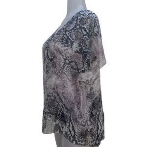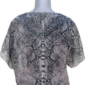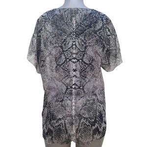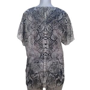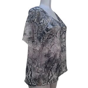 Style & Co. Blouse Women's Medium Black Tan Snakeskin Print Sheer Sleeves