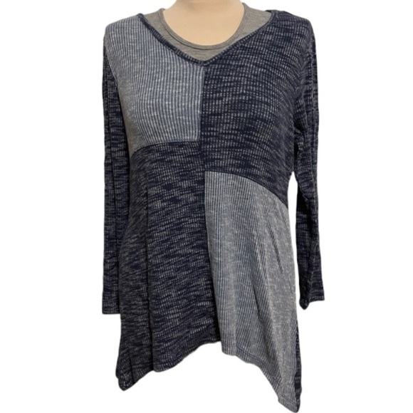 Style & Co Blue Geometric V Neck Sweater Asymmetrical Hem Size Small