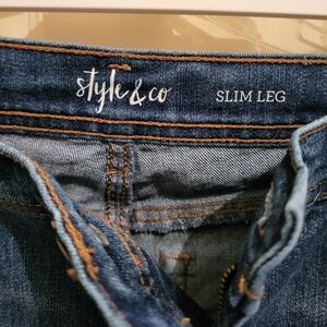 Experience the perfect blend of style and comfort with these blue slim jeans from Style & Co. Crafted in a classic denim wash, they offer a sleek silhouette that complements any casual ensemble. The subtle fading adds a touch of character, making them a versatile addition to your wardrobe.