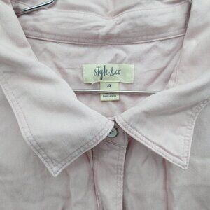 Style & Co Boyfriend Shirt Women’s PL Begonia Pink Button Up Roll Tab Sleeve NWT
