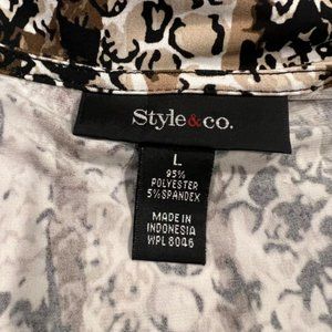 Style & Co Brown, Black & Ivory Sleeveless Blouse Size Large