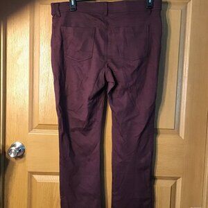 Style & Co Dark Burgundy pants, Size 14 Shell 71% Rayon, 25% Nylon, 4% Spandex, Inside Panel 93% polyester, 7% Spandex