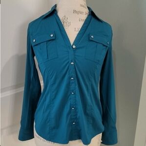 Style & Co. Button-Down Bali Blue Polyester Blend Stretch Blouse - Size PP