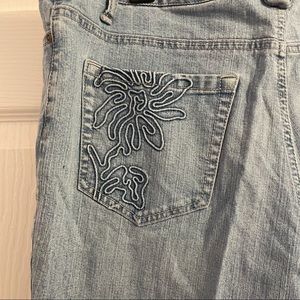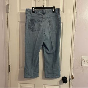 Description: This capri is in good condition it doesn't have stains neither rips. The Button and zipper work perfectly fine! The Capri has some designs on the Left back pocket you can see it in the picture number 3. These Capri would be used by Casual Looks, and Vintage Looks!