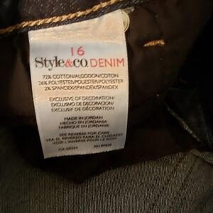 Style & Co Capri denim Jeans size 16. These 5 pocket dark blue denim jeans are in Great preowned condition. Waist 36" inseam 22" Rise 12".