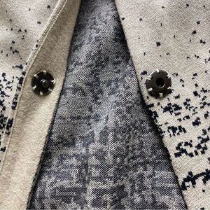 Style & Co. Cardigan Sweater Mid Length Size Small. Excellent used condition. Light brown with black design. 2 front pockets. Hidden snap front closure. Long sleeves. Measures chest 40”, length 35”, sleeve 22”.