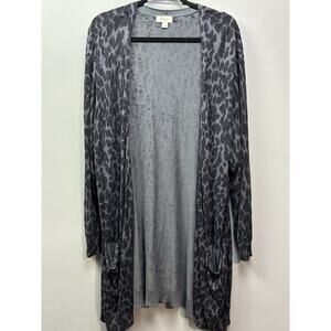Style & Co Cardigan Sweater Womens XL Gray Black Leopard Print Open Front Pockets