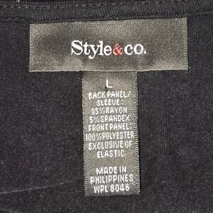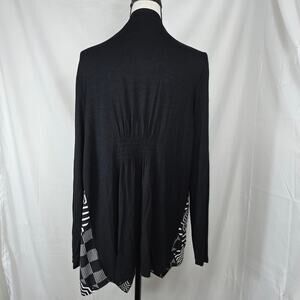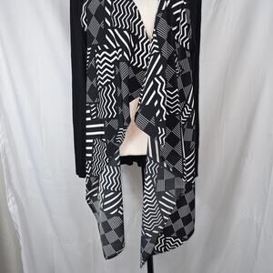 Style & Co Cardigan Women’s L Black White Open Front Waterfall Geometric Long Sleeve