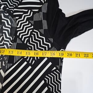 Style & Co Cardigan Women Large Black White Open Waterfall Geometric Long Sleeve