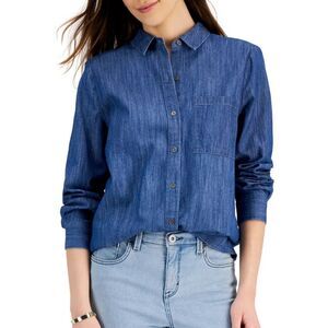 Style & Co. Chambray Boyfriend Shirt Women's Size M Blue Button-Down