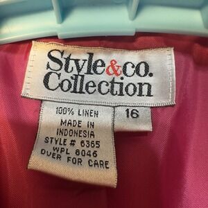 Style & Co Collection Linen Button Down Short Sleeve Top Summer Casual Red 16