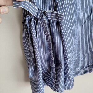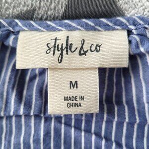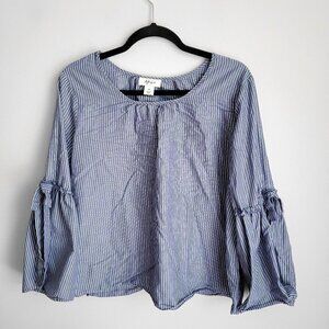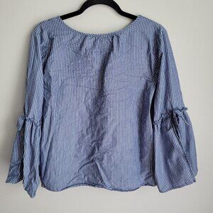 Style & Co Cotton Blue Striped Flare Bell Sleeves Boho Beachy Scoop Neck Top