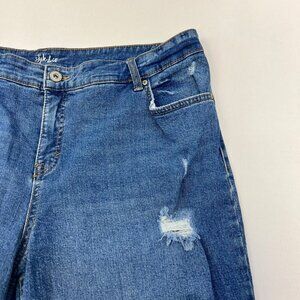 Style & Co Curvy Capri Straight Leg Distressed Jeans Womens Size 18 Medium Wash