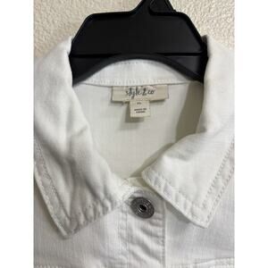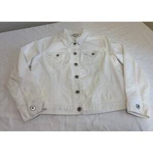 Style & Co Denim Jacket Womens Size PL Pockets Bright White Jean Western