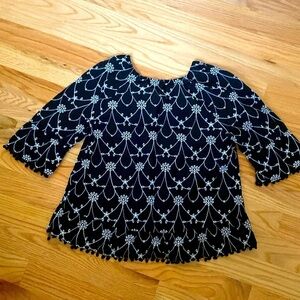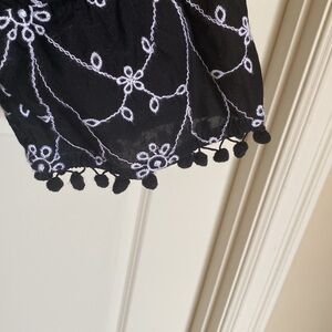 Style & Co Embroidered Blouse Women’s Pom Pom trim Boho cottage core Size L