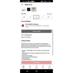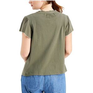 Style & Co Embroidered Flutter-Sleeve Top Olive Drab M *Description Coming Soon*