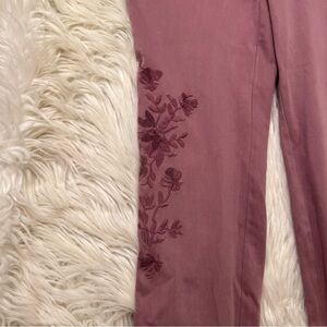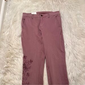 Great condition, new with tags. Style & Co. Embroidered Skinny Pants. Cream Antique Mauve Color. Embroidered floral pattern on one leg. Size 4. Stretch 83% cotton, 15% rayon, 2% spandex. Waist 15” Inseam 29” Front Rise 9”. All measurements are approximate and taken lying flat. Smoke free home. No trades, offers welcome.